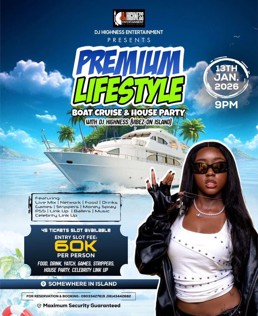 DJ Highness Entertainment is hosting the ultimate luxury turn up on 13th January 2026 by 9PM. Cruise...